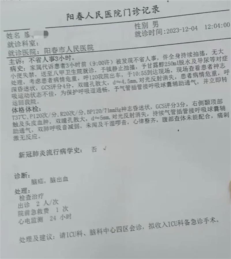 12月4日,广东阳春一名初中男生廖某某在教室里被同学殴打受伤住院,情况危急,引发广泛关注。目前,阳春警方对此事已刑事立案。12月9日,廖某某的一名亲属告诉极目新闻(报料邮箱:jimu1701@163.com)记者,目前孩子仍处于昏迷状态,现在家人就两个想法,一是尽最大努力救人,二是希望顶格处理打人者。