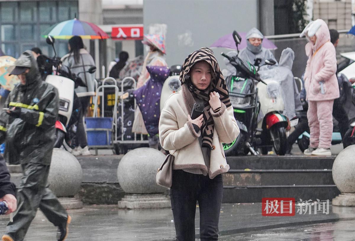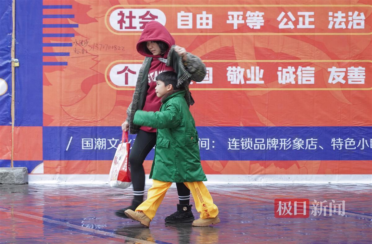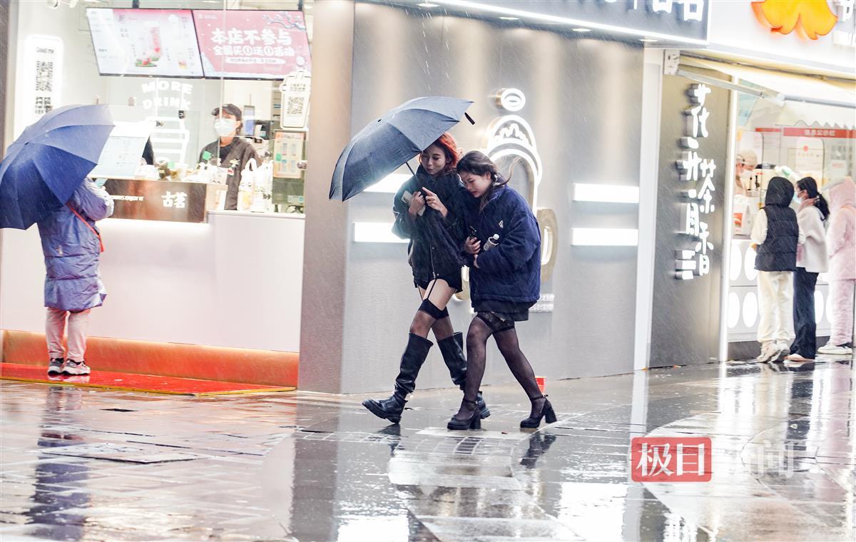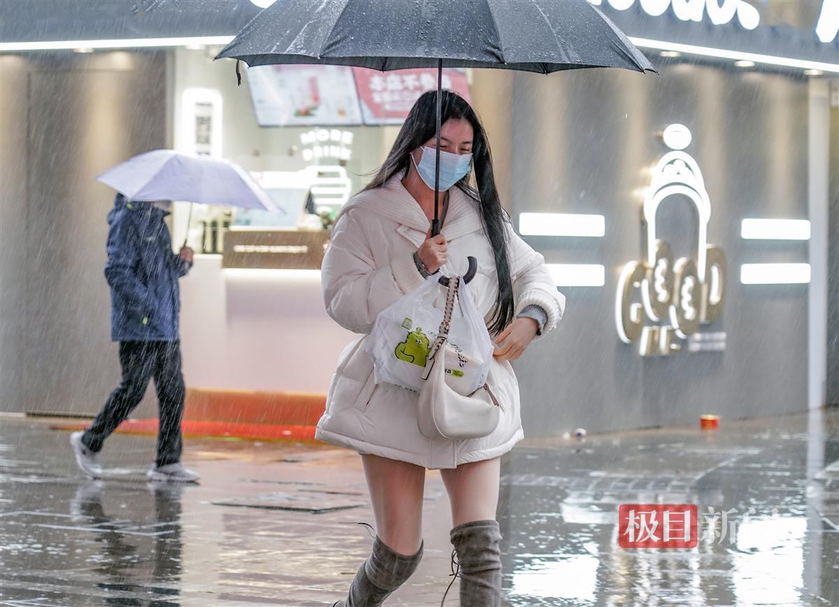 12月10日,寒潮以降雨、大风的方式强势到达武汉,中断了连日来“温暖如春”的好天气,武汉气温急速下降。在光谷雄家咀,寒风冷雨给户外活动的人们带来了不便。