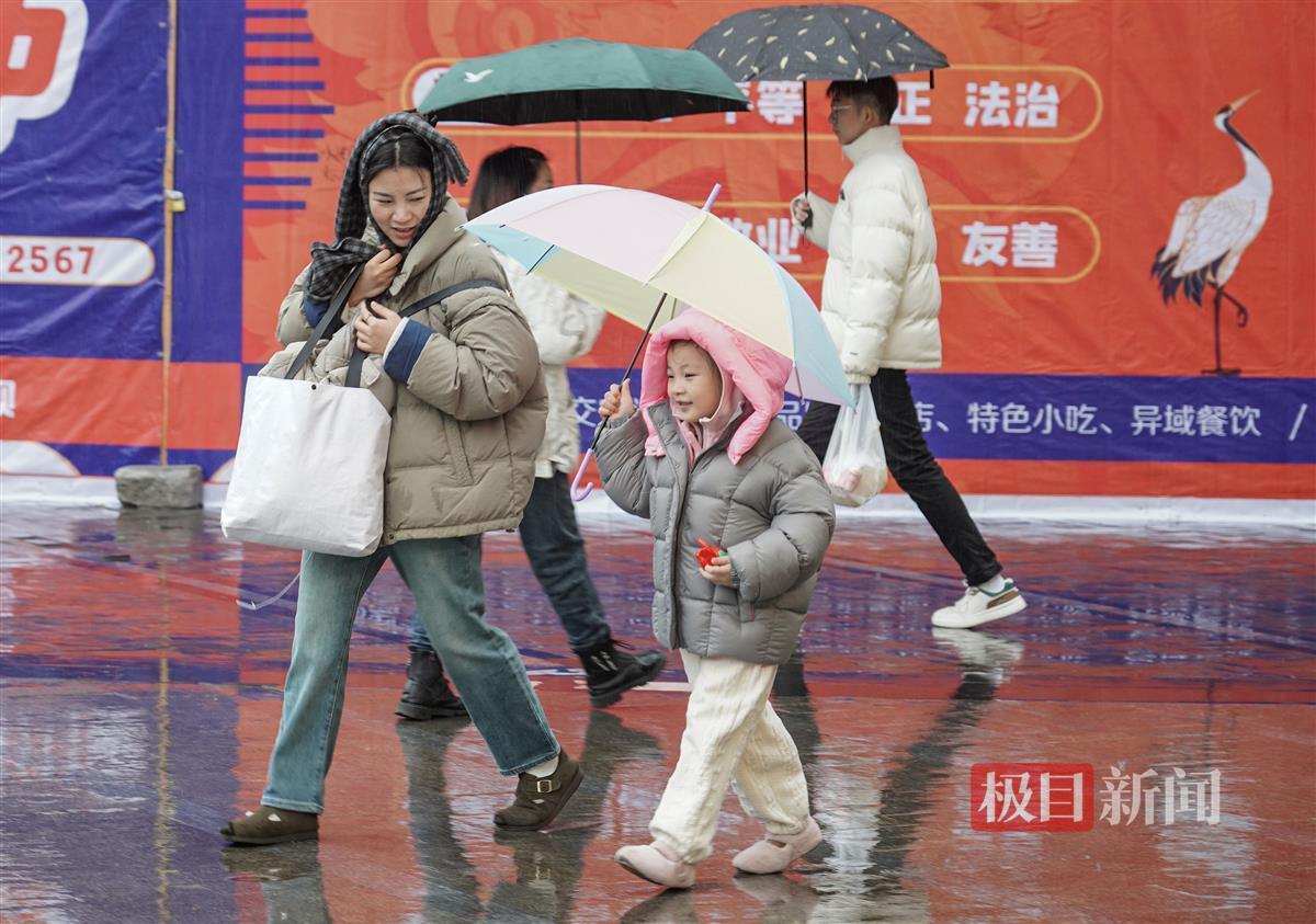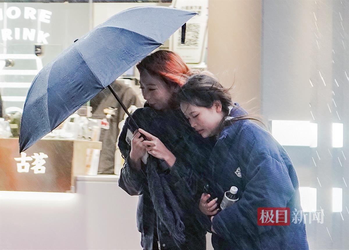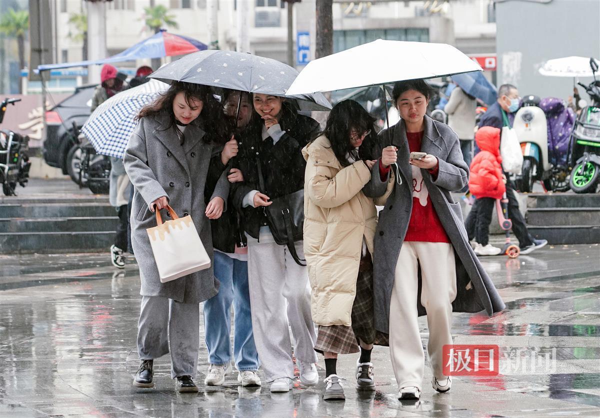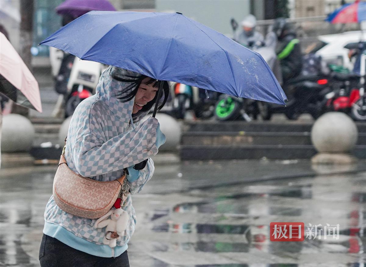 12月10日,寒潮以降雨、大风的方式强势到达武汉,中断了连日来“温暖如春”的好天气,武汉气温急速下降。在光谷雄家咀,寒风冷雨给户外活动的人们带来了不便。