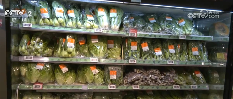 在北京这家超市的蔬菜销售区,这里新上架了10多款霜打菜,包括来自宁夏、甘肃、青海等北方高海拔地区以及浙江、湖北等高山区域的霜打大白菜、霜打红菜苔等,这些霜打菜是每年霜降后露天种植的蔬菜,为了抵抗寒冷,将体内淀粉类物质转化成糖分,从而比普通蔬菜多一层清甜的口感。