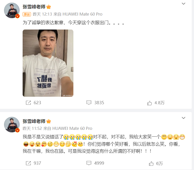 张雪峰经常语不惊人死不休,引发热议或争议后再“道歉”,看似道歉更像挑逗,仍是他观点的坚持与延续,而且表达上似乎也有些轻佻。我想,如果他没有意识到自己观点存在不足、过于偏激表达会误导人,坚持认为自己这些言论没错,那么这种道歉不要也罢。虚假的道歉,比坚持自己观点更糟糕。