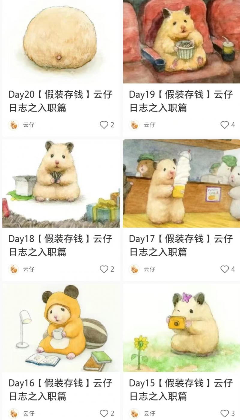 因此,云仔的打工日志更新到第四天,多文写道:入职后,幸运的是,三只实习鼠被安排一起坐在公司的角落里。
