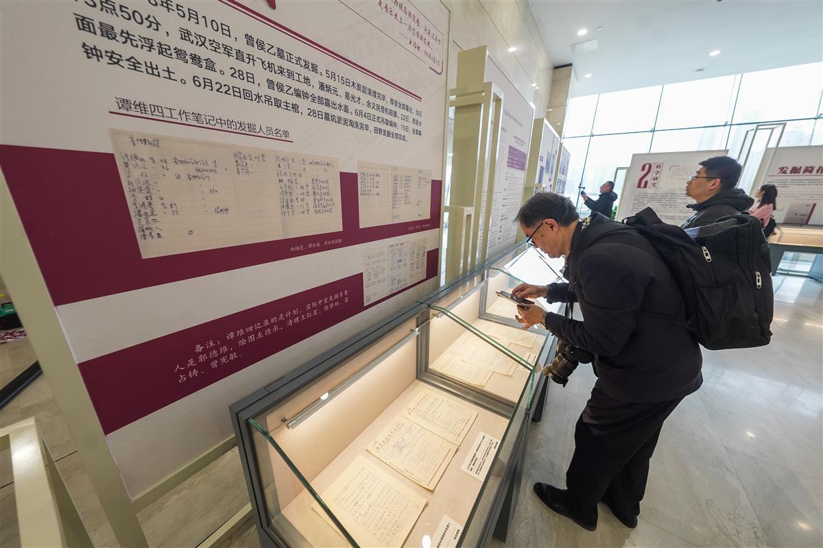 记者在展览现场看到,这些展品包括文件、信札、手稿、笔记、日记、影像、书籍、纪念品等,透过这些珍贵资料,观众得以窥见1978年考古工作者们艰辛的田野工作,多角度了解曾侯乙墓在学术界的影响和重要性,见证数十年来相关研究工作的艰难与严谨。