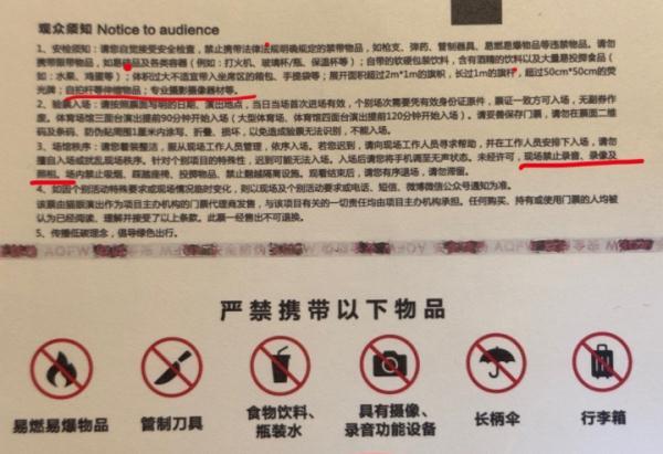 AKA废话制造机 :演唱会应该短信都有提醒不能带,然后开场大屏幕会提醒吧,我看别人的演唱会都会提醒
