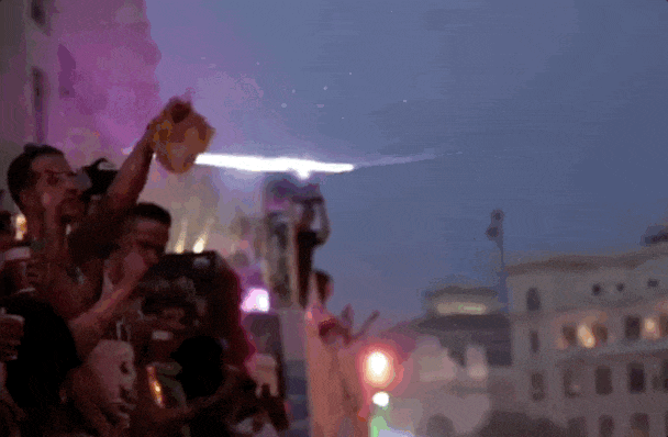 2010年,一位摄影师正在街头拍摄一场庆祝活动,手中的相机刚好被路边的激光灯不断扫射。就在激光扫过第二次的时候,相机所记录的画面上突然出现一条白色的横条纹。