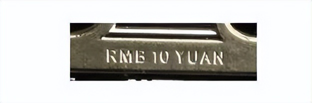 在硬币正面面额数字“10”的底端,可观察到“RMB 10 YUAN”的微缩文字。防伪特征效果见图4。
