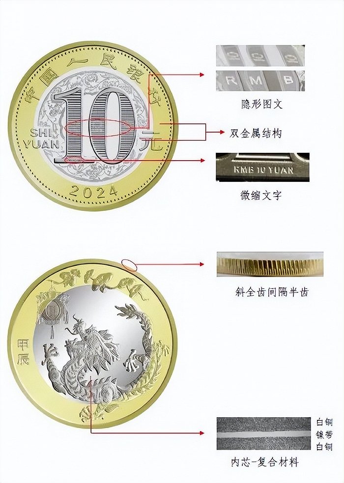 1.2024年贺岁双色铜合金纪念币公众防伪特征
