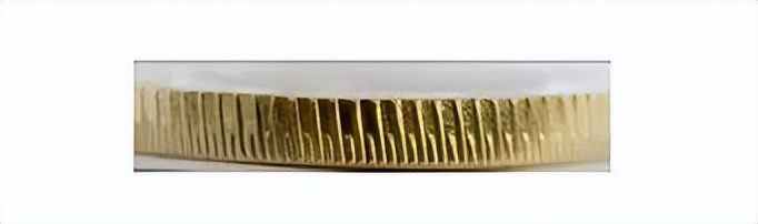 硬币外缘分布有交替排列的斜全齿与半齿。防伪特征效果见图2。