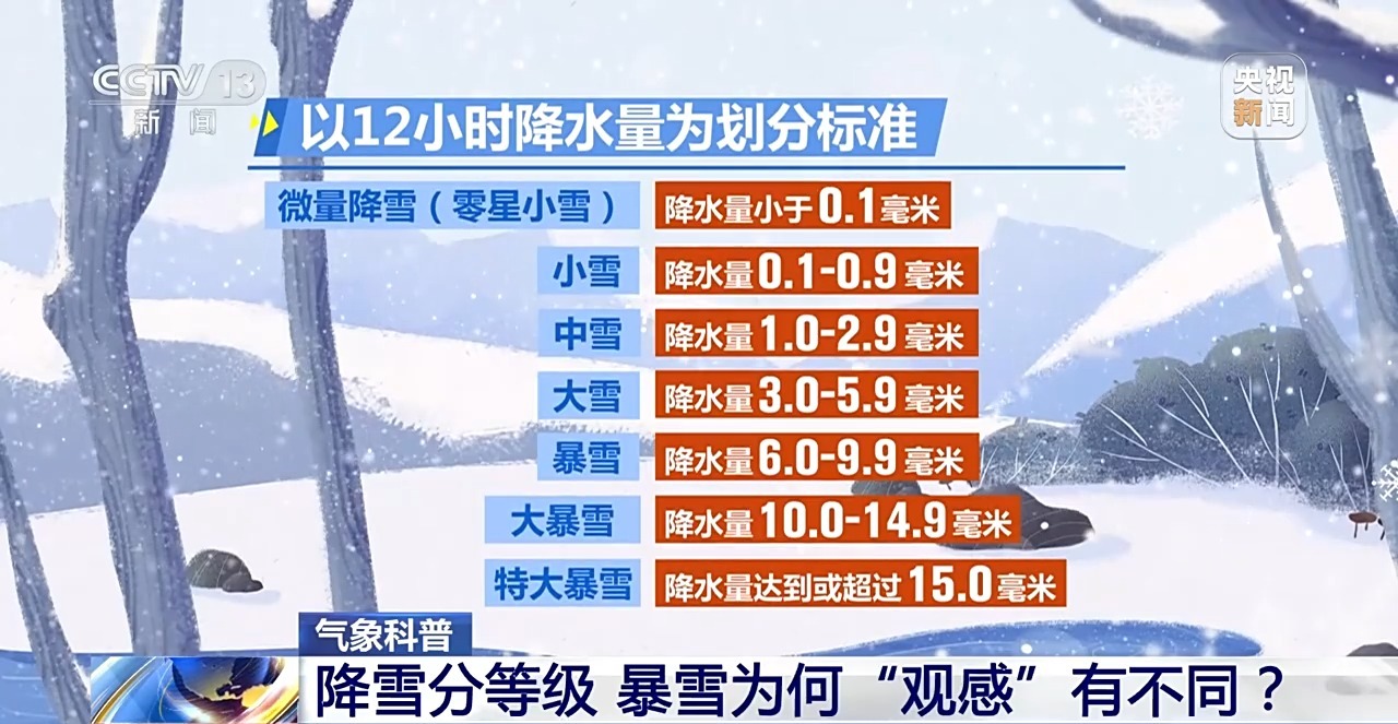这两天局地会出现大到暴雪,那么,究竟多大的雪才是暴雪?暴雪又划分为哪些等级?为何有时对暴雪,人们的“观感”不同呢?一起来了解一下。
