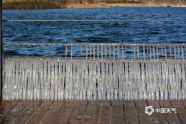 今早,河南汝州最低气温降至零下7℃左右,湖边草木挂满冰凌。