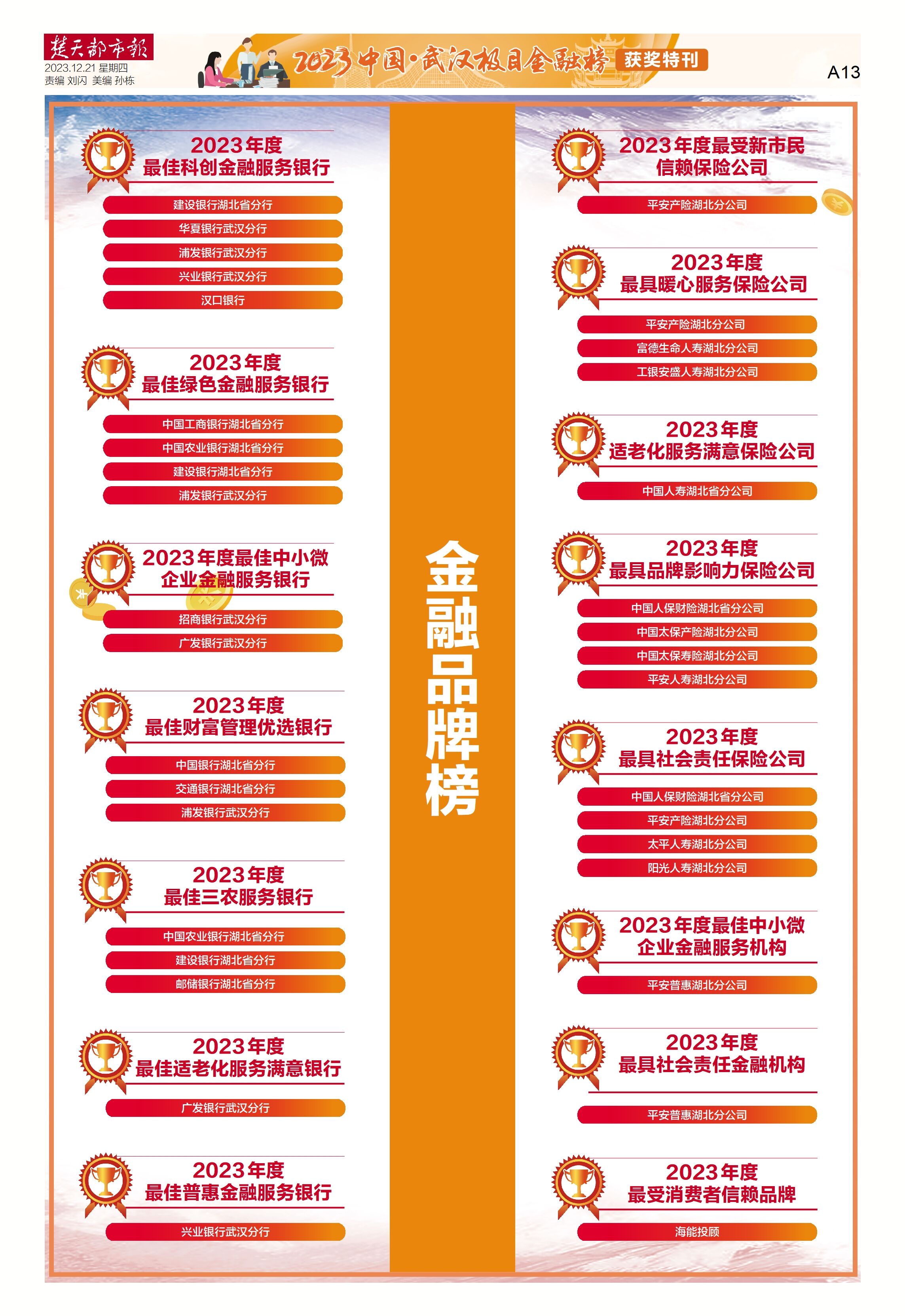 附:2023中国·武汉极目金融榜榜单
