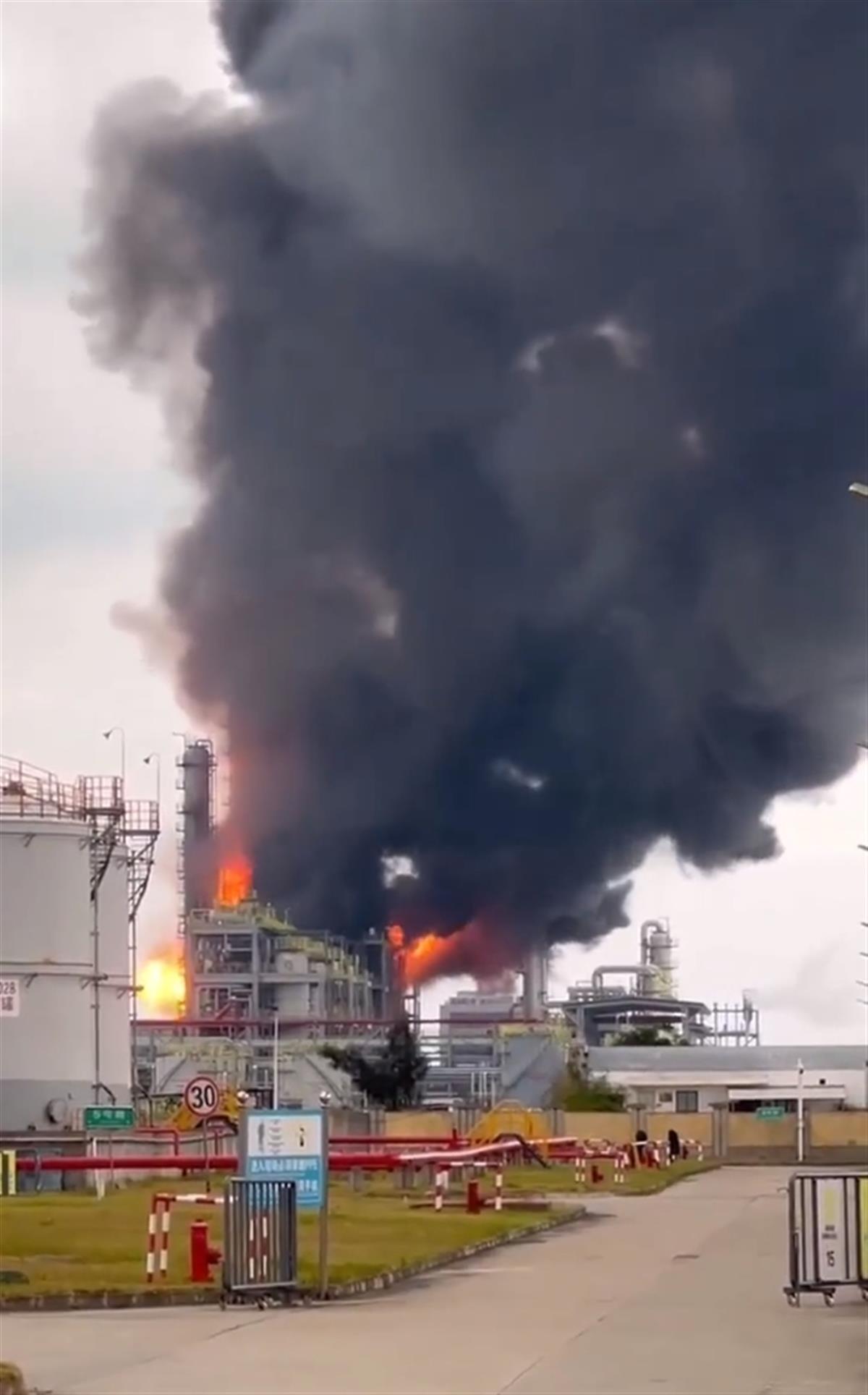 网友爆料称,位于福建泉州泉港区石化工业园的中化学天辰 (泉州) 新材料有限公司发生爆炸。网友拍摄视频显示,一栋建筑燃起熊熊大火,黑烟滚滚。消防人员正在现场进行救火。