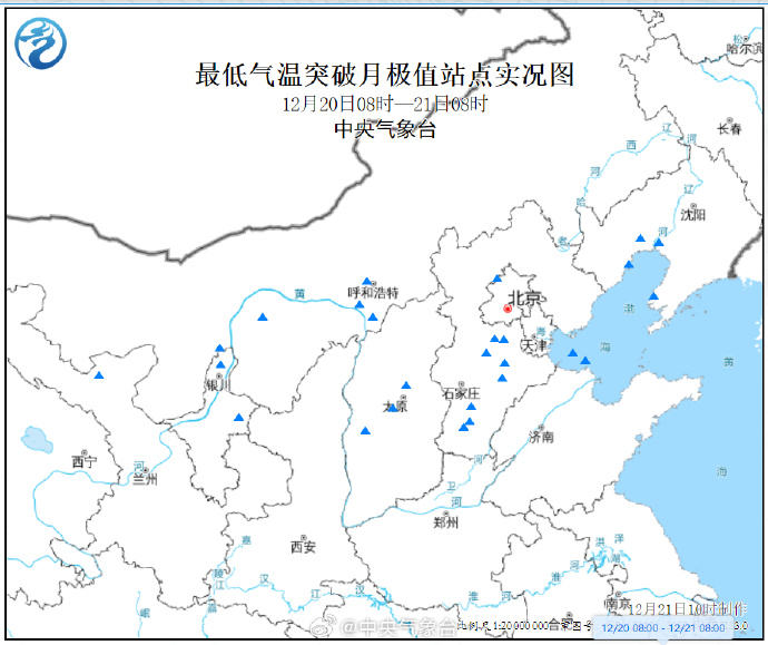 中央气象台:12月21日,20余站点气温破12月最低气温纪录