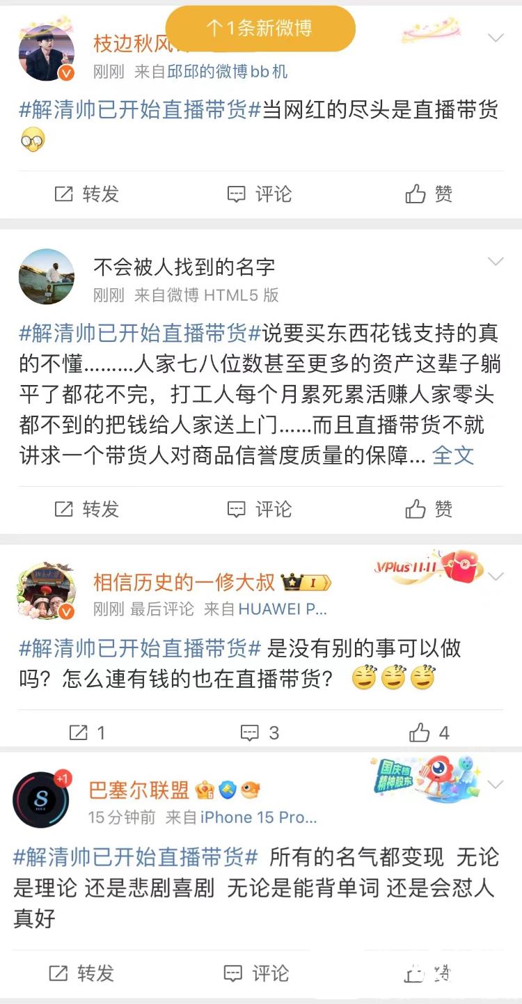 话题#解清帅已开始直播带货#的网友讨论