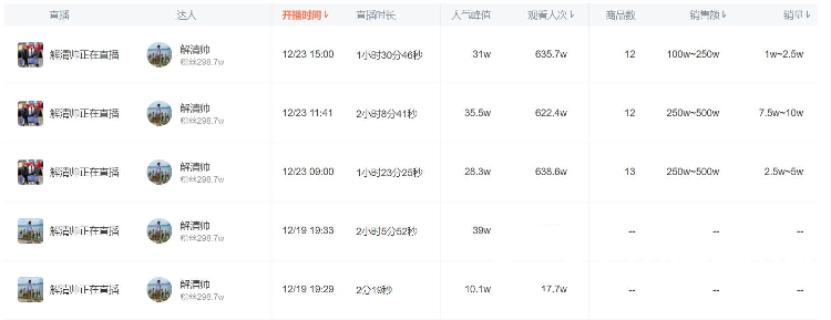 12月23日上午,解清帅在个人社交账号和妈妈、哥哥、嫂嫂、妹妹等人开启首场直播带货,解清帅为某服装品牌进行品牌宣传并直播带货。首场直播,同时在线人数超过10万人,有近900万人观看直播。直播结束后,他又开始了第二场直播带货。