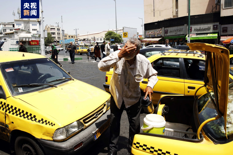 △一名伊朗出租车司机在德黑兰街道上取水解暑