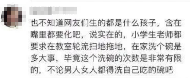 还有一部分网友认为:在家做家务很正常,没有必要这样上纲上线。