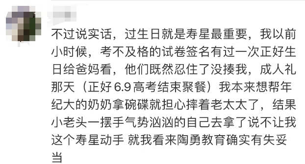 12月23日,3年前曾遭患者持刀暴力伤害的北京眼科医生陶勇发长文为女儿庆生,提到让女儿洗碗一事,不料引发争议。相关话题冲上热搜。