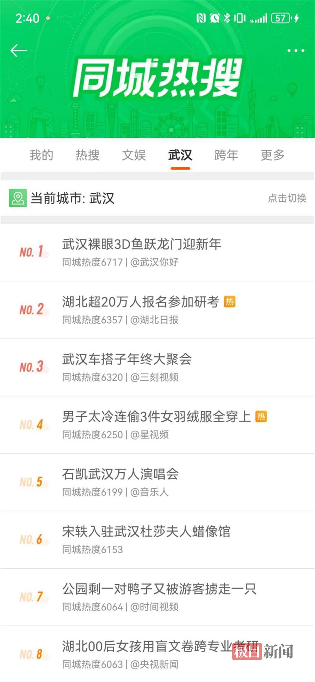 随着鱼跃龙门的惊艳亮相,#武汉裸眼3D鱼跃龙门迎新年#的微博话题冲上热搜第一。此外,裸眼3D联手武汉发布、湖北经视官方同步造势,全网总曝光量高达1亿,短视频关联抖音热榜第6,吸引各大社交平台达人组团打卡,超1万人次互动点赞,热度还在持续攀升。看到鲤鱼跃龙门的朋友们,新的一年必定祥龙腾飞、好运旺不停!
