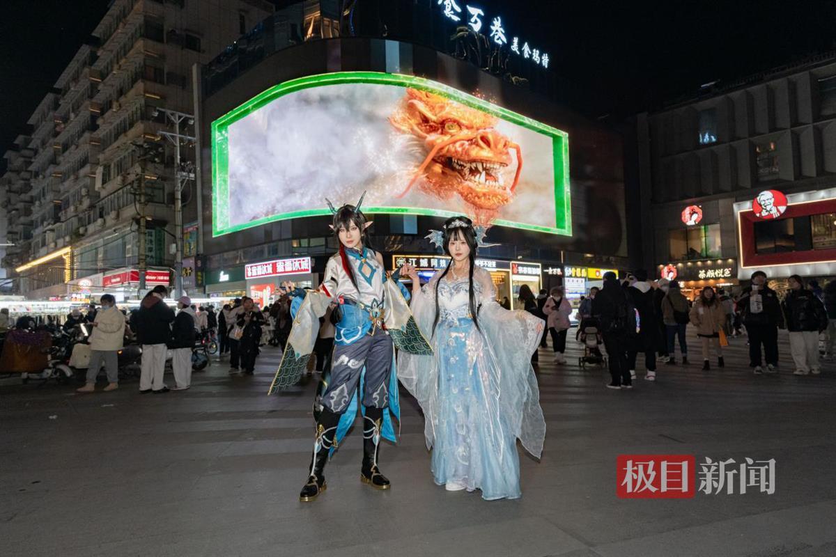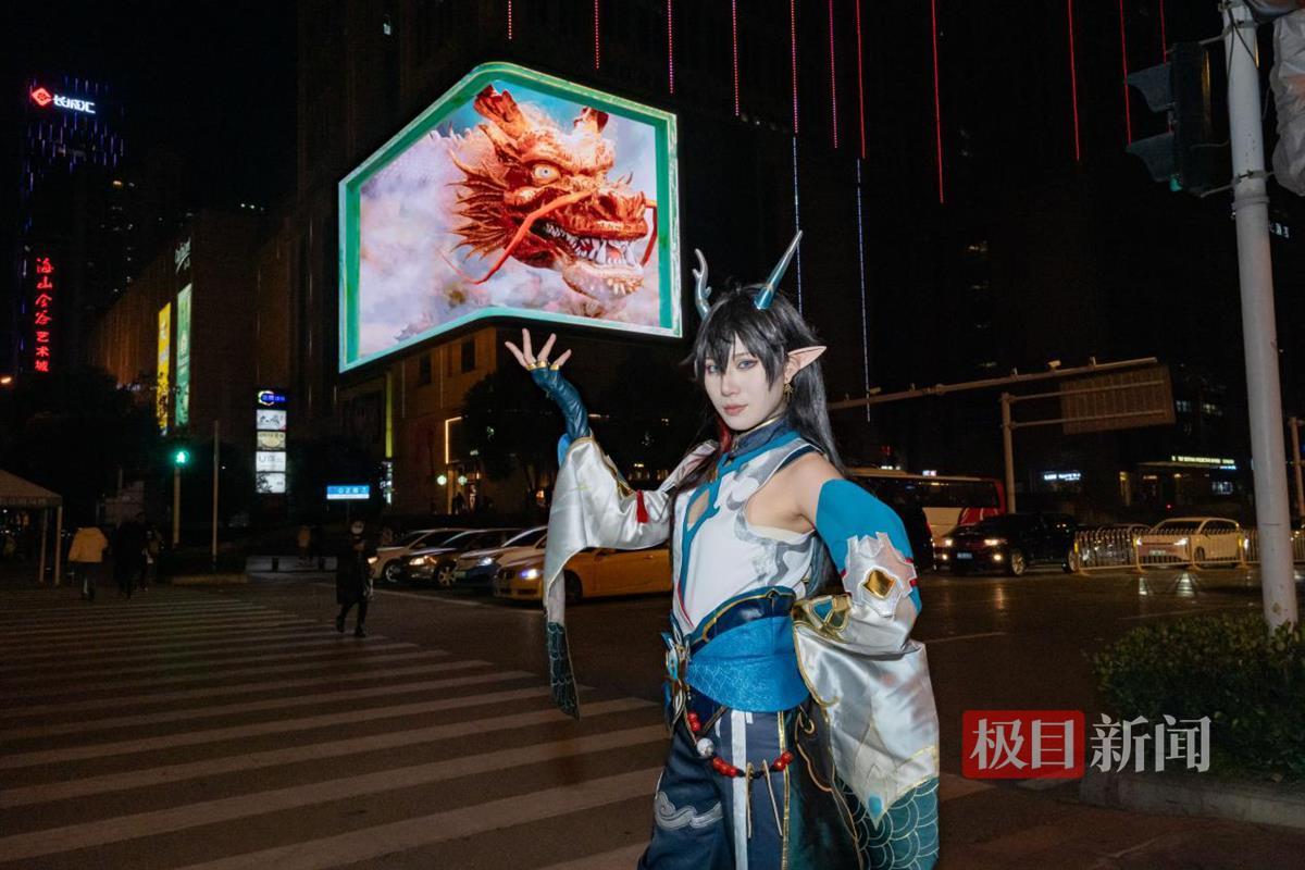 除了逼真震撼的鱼跃龙门裸眼3D祝福,现场创意的新年COS,绝美的龙人、灵气的鲤鱼精,更吸引了一大批年轻人前来拍照打卡。