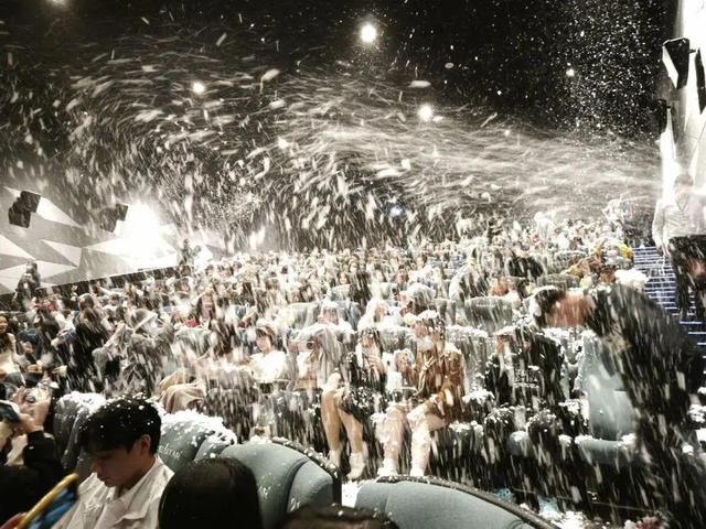 从网上流传的一些图片或视频看,有的观众全身被“雪”覆盖了厚厚一层,影厅内一片狼藉……一场预先设计好的人工雪,下出了“理想很丰满,现实很骨感”的味道。