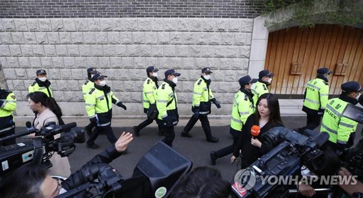 韩国前总统住宅外的安保力量(图片来源:海外网)