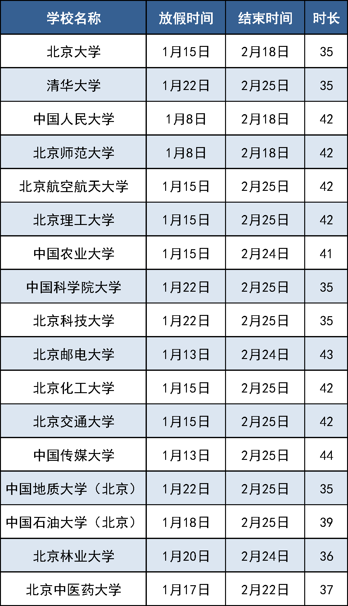 央广网北京1月3日消息(记者冯仪)寒假在即,北京各大高校纷纷公布2024年寒假放假安排。北京大学、清华大学、中国人民大学等近40所高校公布的放假安排中,最长的假期达48天。