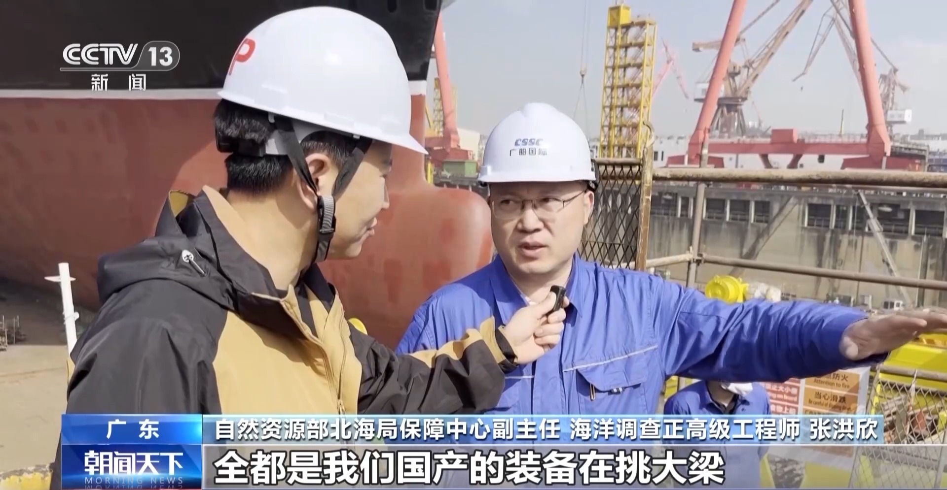 自然资源部北海局保障中心副主任 海洋调查正高级工程师 张洪欣:主要的、大家能看得到的全都是我们国产的装备在挑大梁,在承担最主要、最艰苦的工作,也都是我们国产的装备在做。