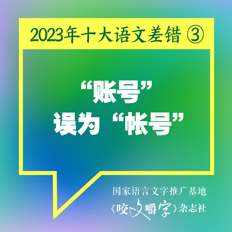 2023年7月,话题“账与帐很多人分不清”冲上热搜。生活中,许多网站和手机应用软件都将“账号”误为“帐号”。古汉语中,“帐”可通“账”。但是,2001年发布的《第一批异形词整理表》对二字明确分工如下:“账”用于货币和货物出入的记载、债务等,如账本、报账、借账、还账;“帐”专表用布、纱、绸子等制成的遮蔽物,如蚊帐、帐篷。“账号”本指单位或个人跟银行建立经济关系后,银行在账上给该单位或个人所编的号码,与货币等有关;后由此义引申,指用户访问计算机系统或使用某些资源时使用的识别码。因此,表示用户识别码时,“账号”才是正确词形。