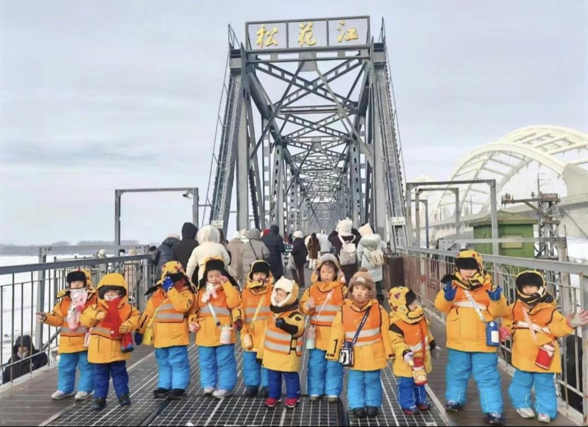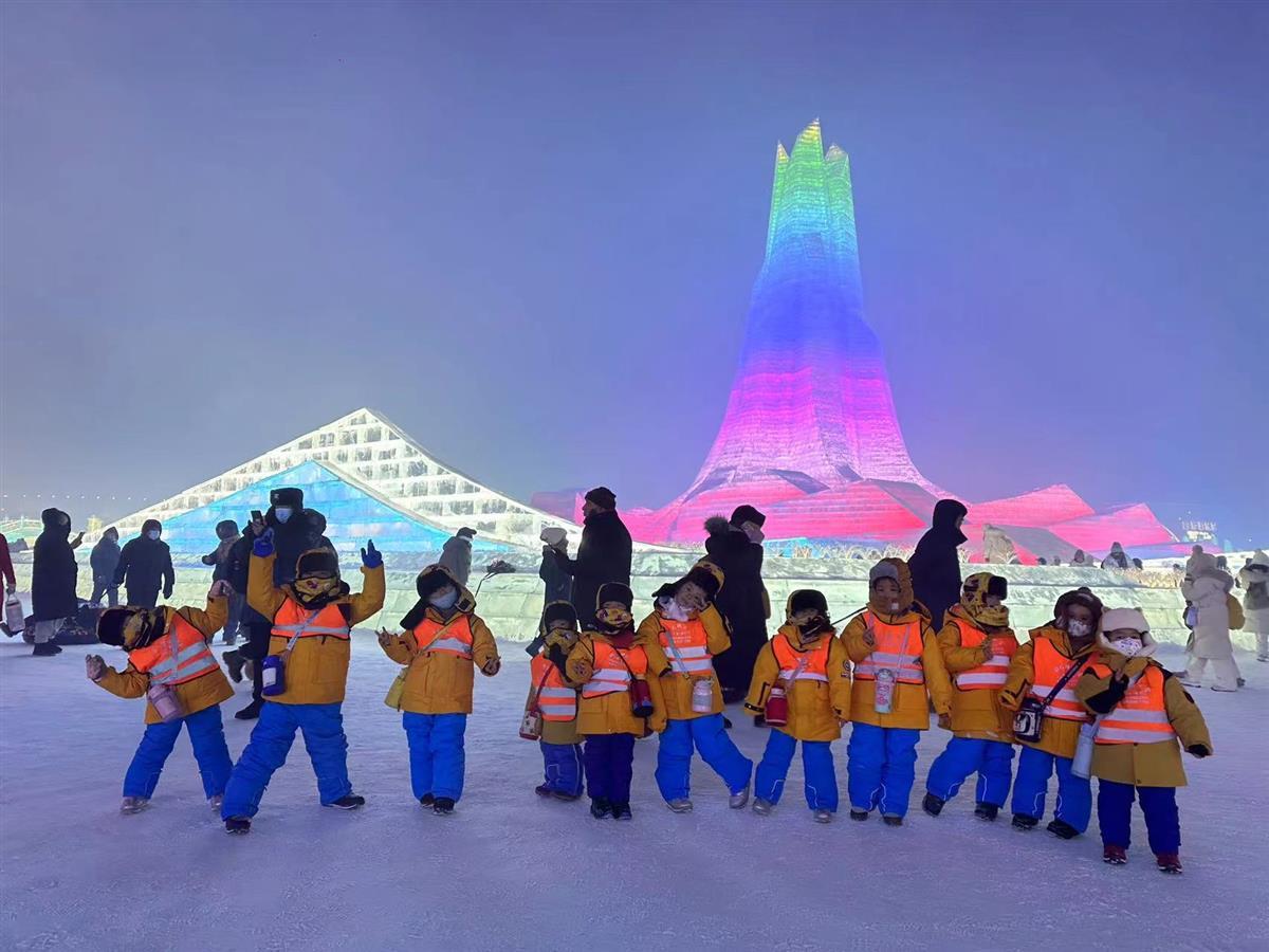 极目新闻记者了解到,这11个孩子年龄在3至6岁,来自广西南宁的一家私立幼儿园,有3名老师带队,哈尔滨是他们东北游学中的其中一站。
