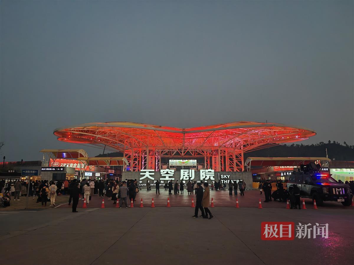 2023年12月31日下午4时15分许,在距天空剧院约1公里的李畋路和锦程大道交会路口,四面八方的游客正向剧院方向汇聚,通往剧院的锦程大道此时已经封路,游客只能步行前往。