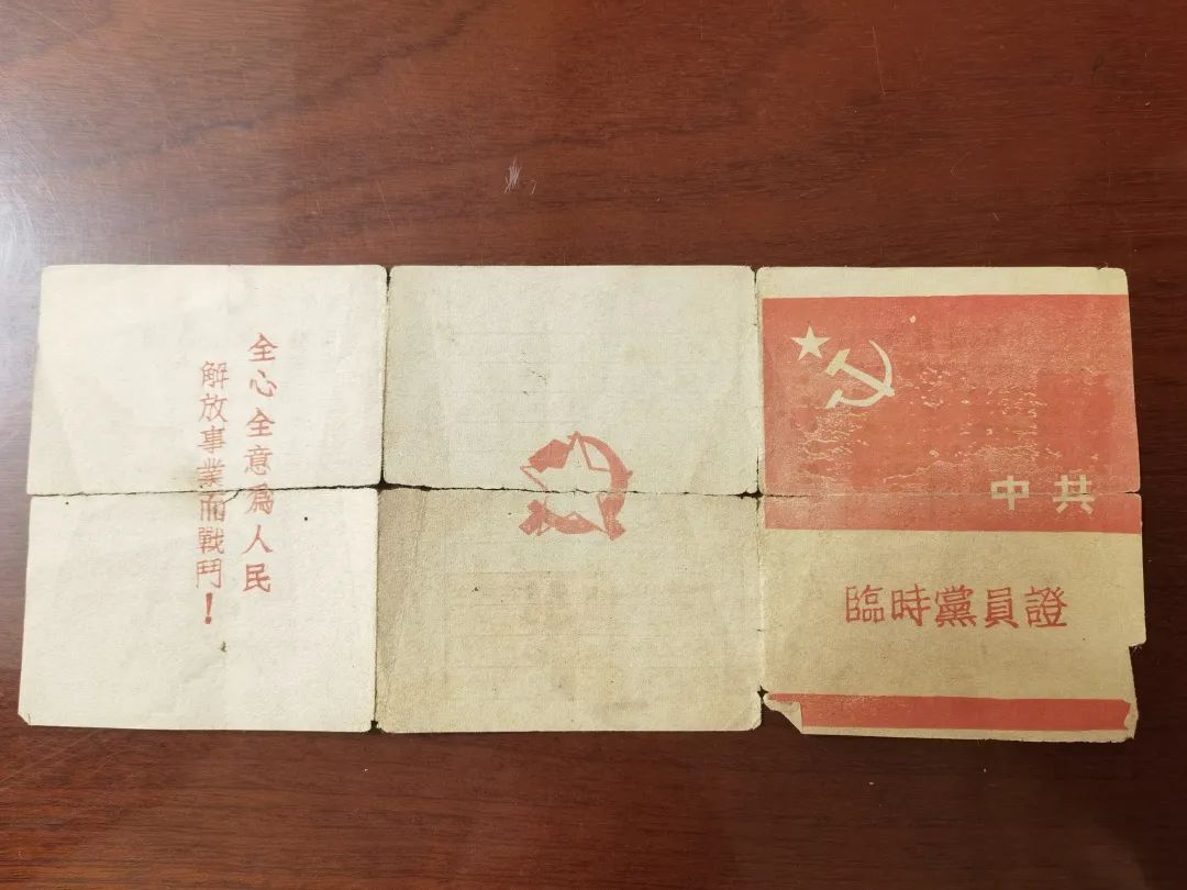 武汉第六干休所洪亮捐赠的中共临时党员证。这张临时党员证陪伴洪亮70多年,经历了解放战争和抗美援朝的战火洗礼,见证了他革命的一生。
