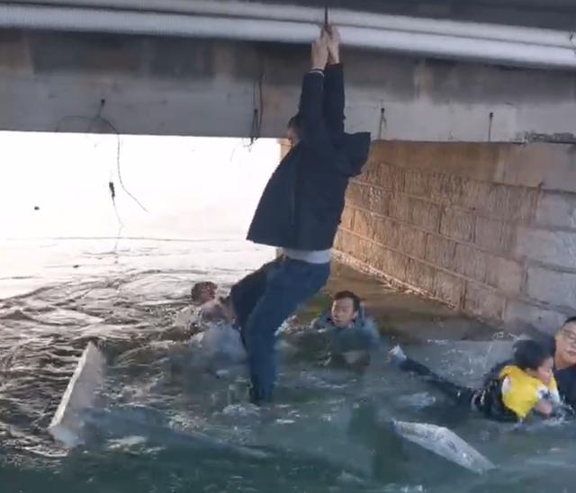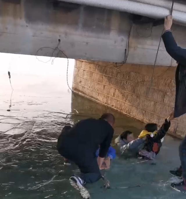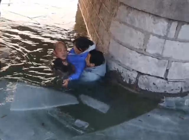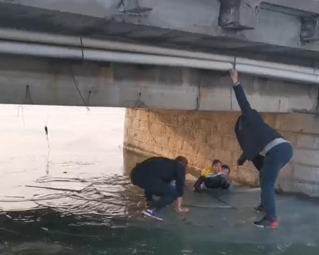 危急时刻,刘超、刘晓兄弟两人以及刘超的同事和另外一名热心大哥闻声赶来,一起冲上冰面参与到救援中。“孩子,别怕,抓住我的手。”刘超蹲在冰面上,试图抓住男孩的手。另一位热心大哥则小心翼翼地踩在冰面上,一只手抓住桥洞上凸起的铁丝,一只手使劲伸向男孩,使出浑身力气把男孩拽上了冰面。
