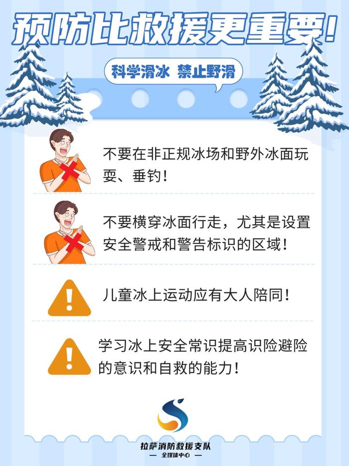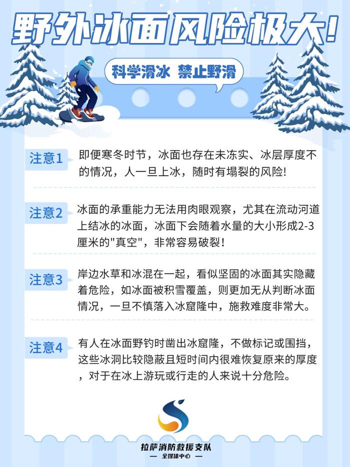 正值冬季,河道、水库开始结冰,滑冰一定要选择正规冰场,莫要“滑野冰”,在无人看管冰层厚度不达标的冰面上,切勿玩耍、行走谨防落入冰窟窿酿悲剧!