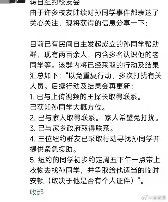 实际上大多数出国后遇到问题的中国人,因为面子的缘故都报喜不报忧,羞于向国内的家人寻求帮助。如果当年离婚后,能和家人多沟通,能够及时去看医生,或许不至于流落街头这么多年。目前复旦大学在纽约的校友会已经准备寻找他看看如何提供帮助。