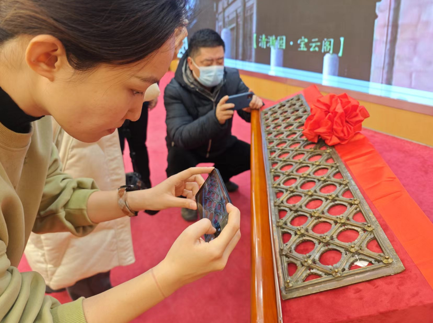 今年,捐赠人李檑、李阳、张珏向国家文物局捐赠宝云阁铜窗芯1页,经划拨正式入藏颐和园。李檑先生告诉记者,他们三位捐赠者都是收藏爱好者。这扇铜窗芯近年来在法国的拍卖会上出现过两次,但都流拍了。2023年6月,他无意中在拍卖行库房的一个角落里发现了这扇窗芯,意识到可能是中国的文物,查询资料后发现,它与颐和园宝云阁流失的窗芯非常相似。于是在铜窗芯第三次被拍卖时与另外两位朋友一起拍了下来,并捐赠给国家文物部门。