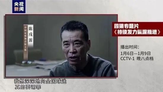 1月9日晚,央视晚8点档播出的系列反腐电视专题片《持续发力纵深推进》第四集《一体推进“三不腐”》中,国家体育总局原副局长、中国足球协会原党委书记杜兆才、中国足球协会原主席陈戌源、中国国家男子足球队原主教练李铁3位足球领域系列腐败案主角纷纷“亮相”。此片的播出在足坛内外引发了巨大反响,实际也是对整个行业又一次有关反腐内容的警示教育。据了解,早在上周末央视播出节目预告片之后,中国足协就向内部员工发出了“按时学习收看”的通知,并要求员工们在11日下午3点前提交不少于1500字的观后感。