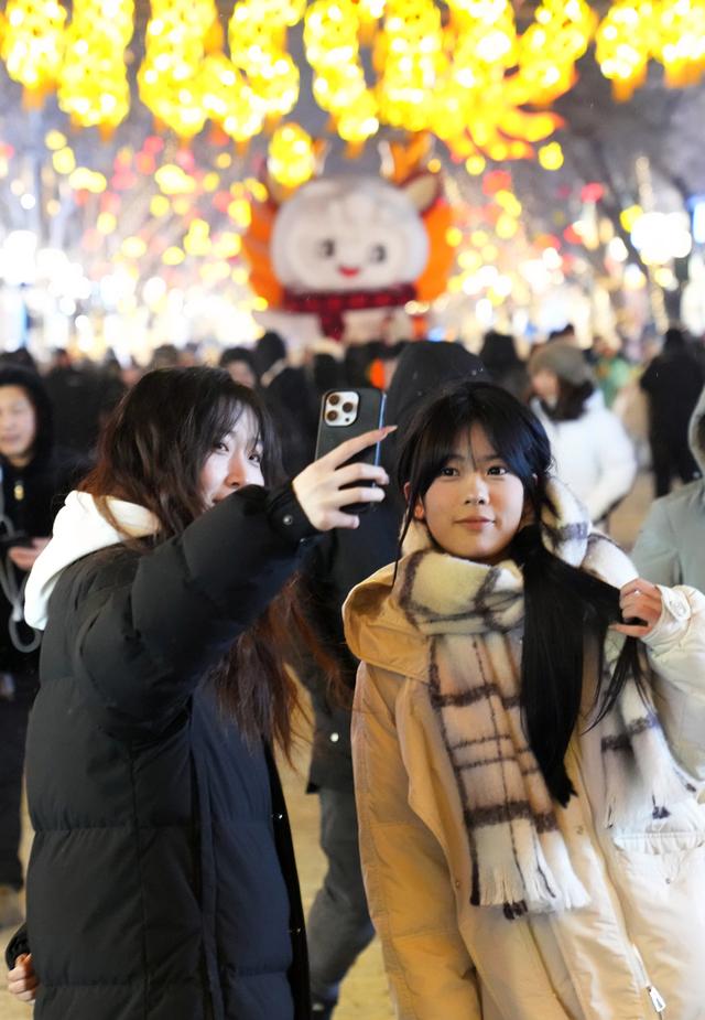 1月11日,游客在中央大街自拍。新华社记者 王建威 摄