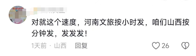 有网友在视频下留言“你和河南文旅准备几点睡”,对此,山西文旅回复“今夜,任生命自由绽放”。