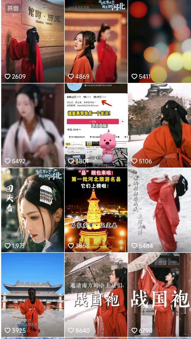 第二天,河北文旅再次听劝,火速改换战略,发出众多穿着战国袍的古风美人视频,这一操作让河北文旅又登上热榜。