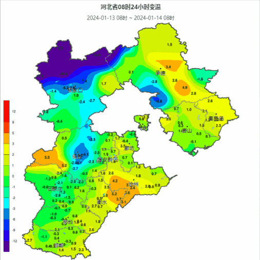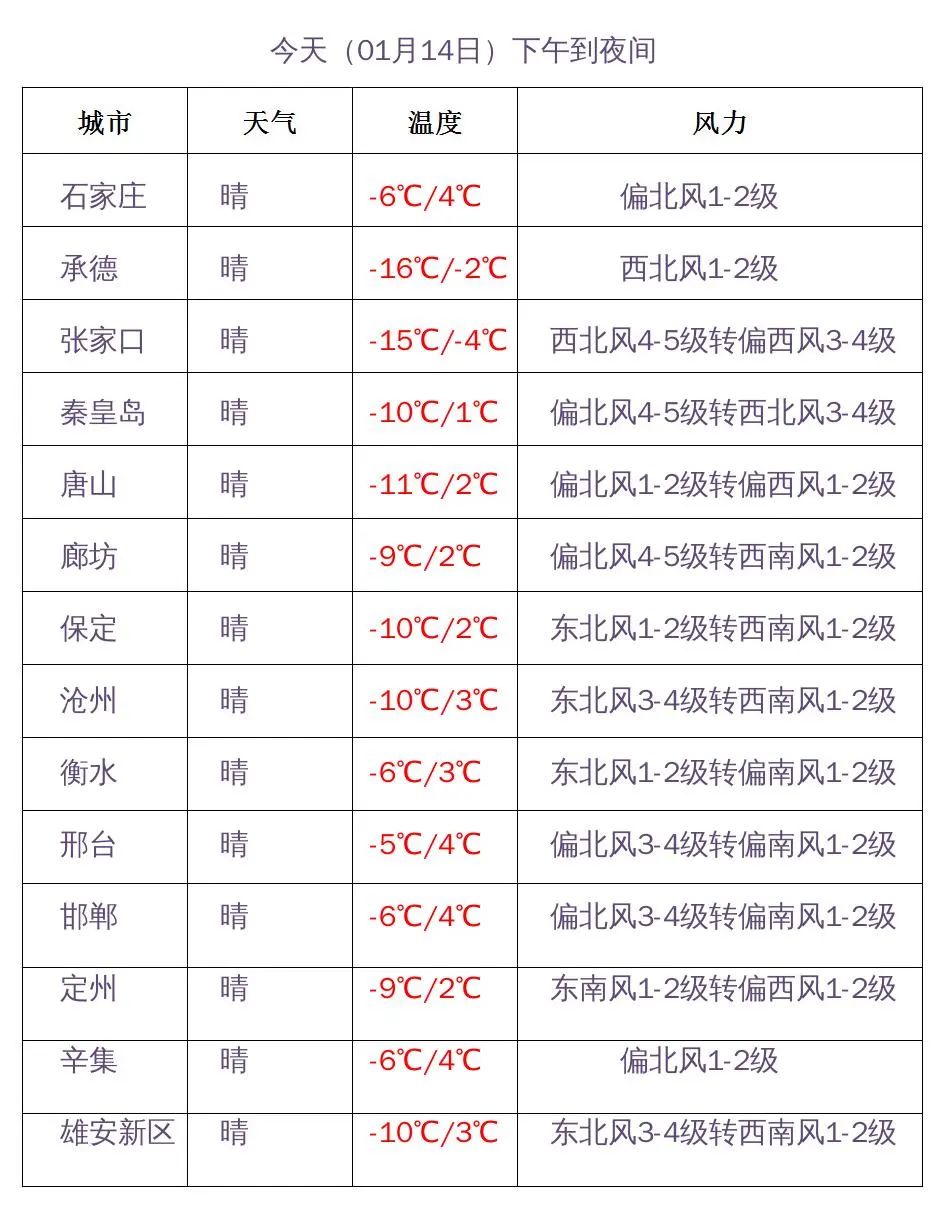 河北省气象台2024年01月14日11时发布天气预报: