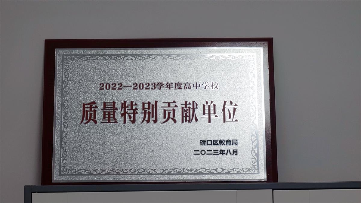去年8月,太平洋高中获得了由武汉市硚口区教育局授予的2022—2023学年度高中学校“质量特别贡献单位”牌匾。