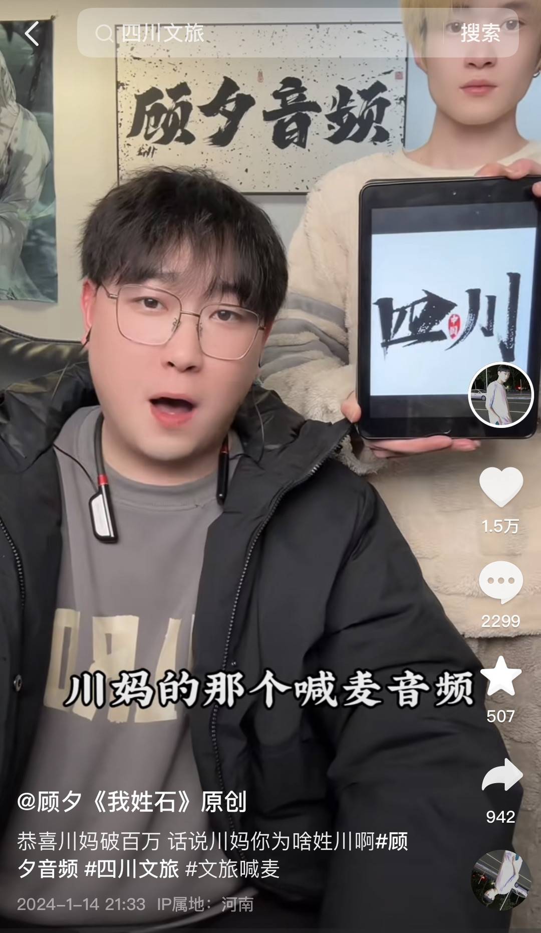 “我姓川,吃玩川”“我姓驻,有点酷”,最近,这个声音在全网火了。在全国各地文旅部门“花式整活”的氛围下,他甘当其“背后的男人”,用喊麦的方式为各地旅游摇旗呐喊。1月15日,封面新闻记者对话了喊麦者曹锦鹏。