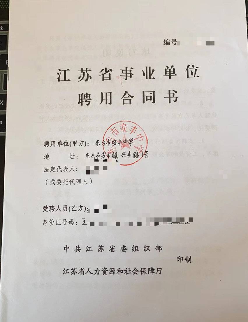 面试流程也比较顺利。赵静说,之后她顺利通过面试考核,在体检以及政审全部合格的情况下,于2023年8月正式与东台市安丰中学签订劳动合同。