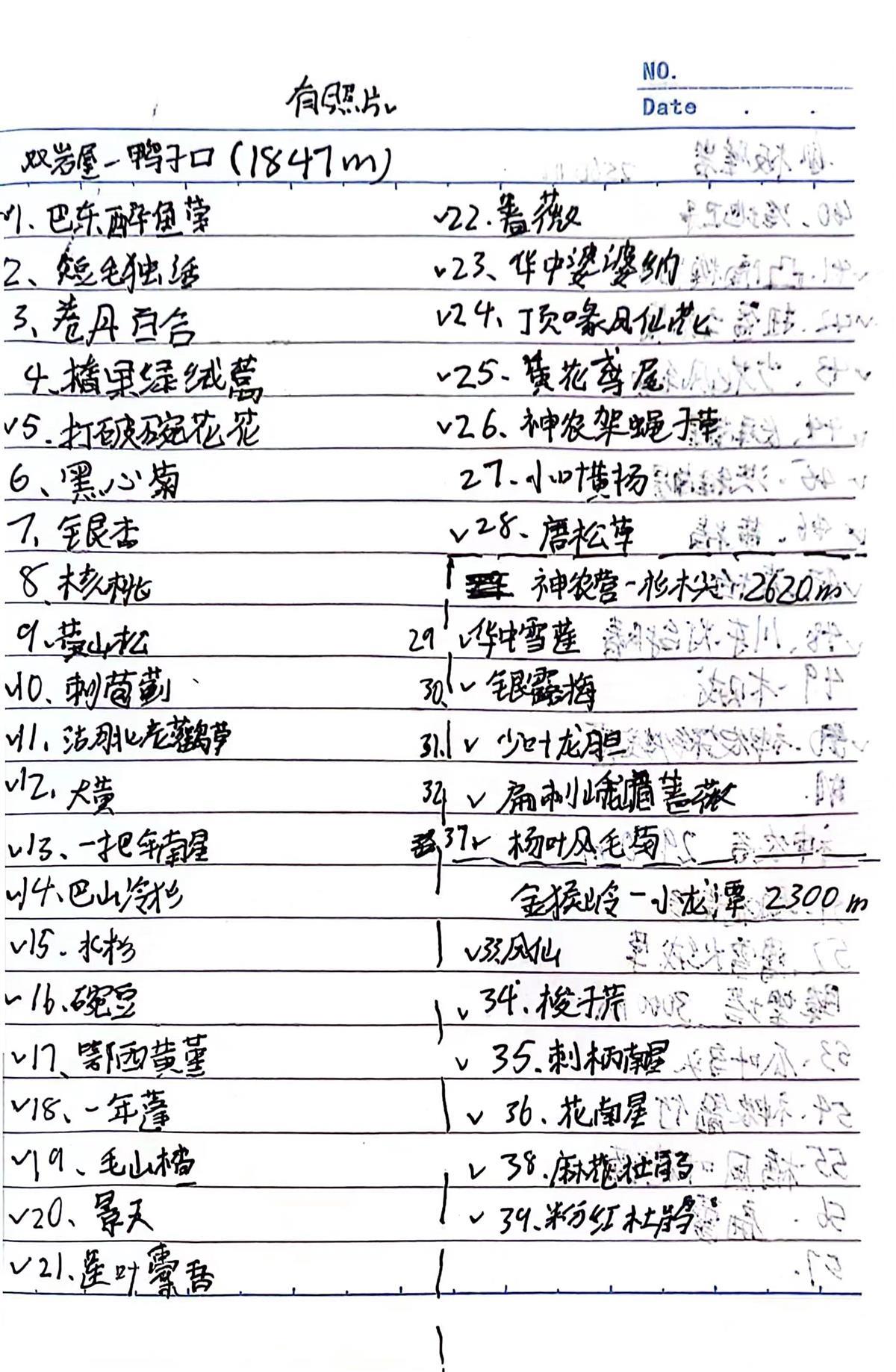 黎一鸣在神农架不同海拔做的植物笔记