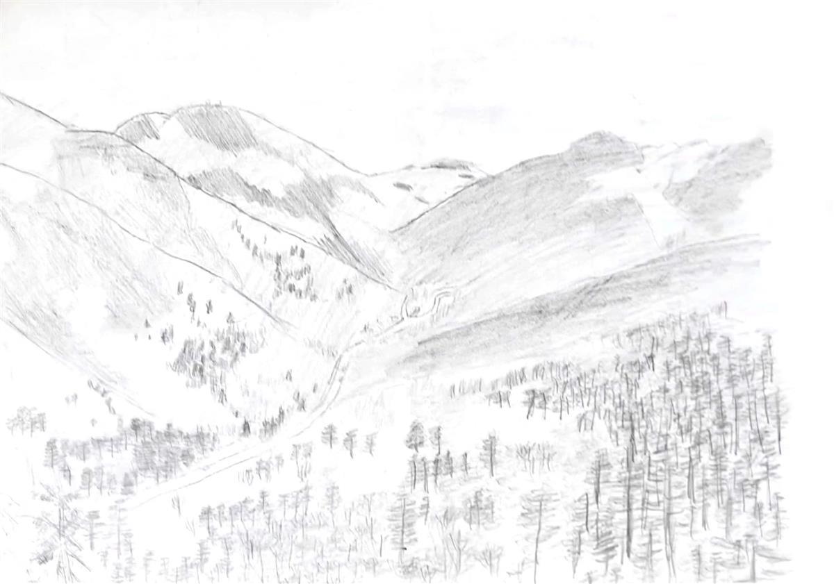 黎一鸣铅笔画的神农架地貌