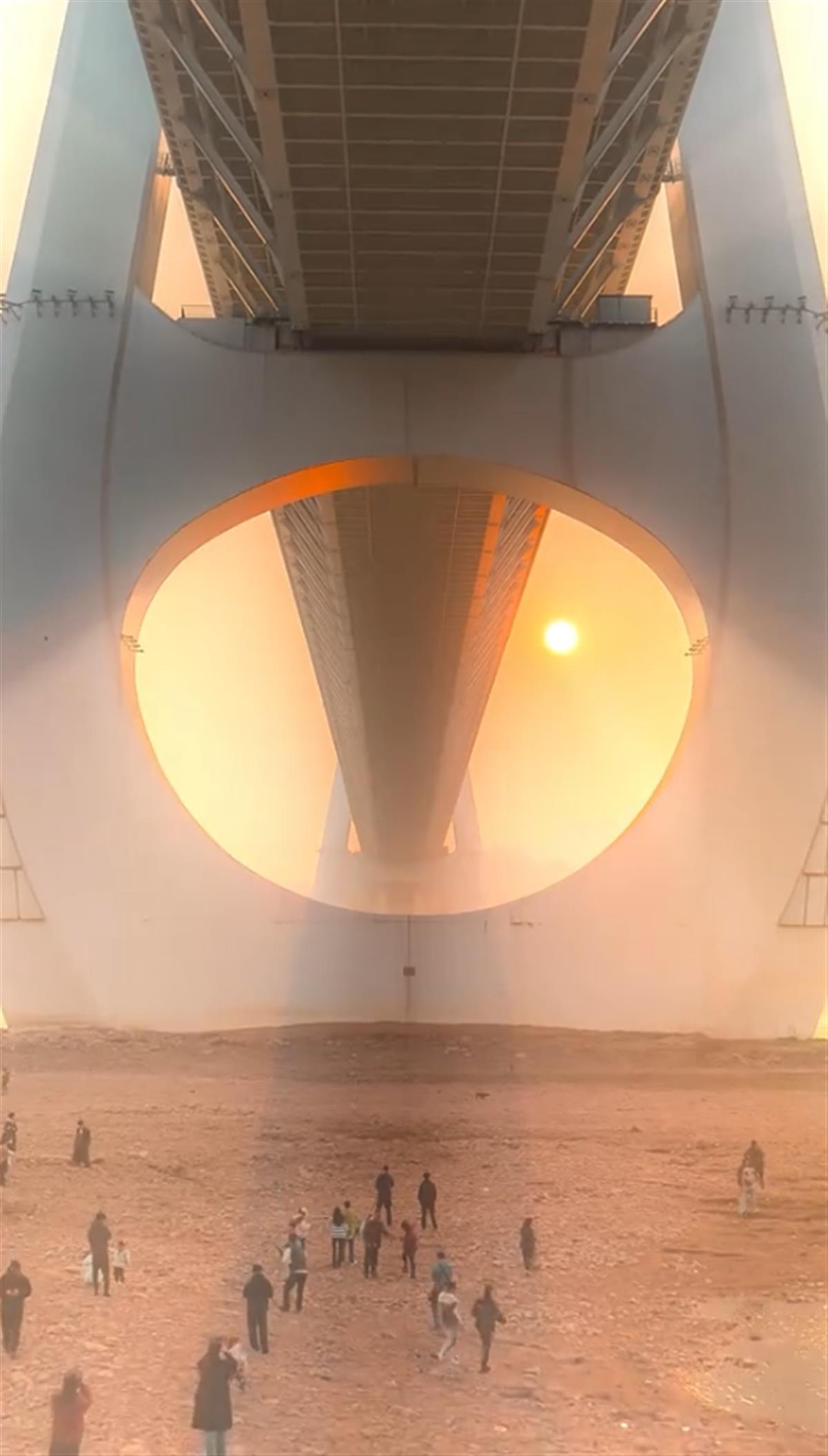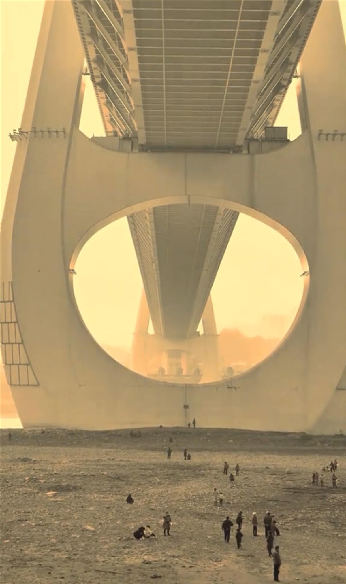 位于重庆市巴南区的白居寺长江大桥已经开通近两年,是连接大渡口区和巴南区的过江通道,桥长1736米。近日,有网友拍摄的白居寺大桥视频走红网络,落日余晖映照在巨大的空心椭圆造型桥墩上,场面恢弘又如梦如幻,再搭配上梦幻的背景音乐,一幅穿越时光穿越未来的科幻画卷扑面而来。这里,随即成了重庆市民及游客们新的打卡点。