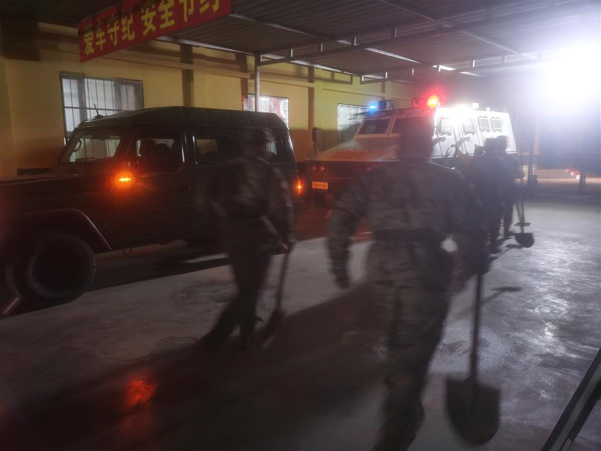 地震发生后,武警阿克苏支队乌什中队紧急集结(齐慧新 摄)