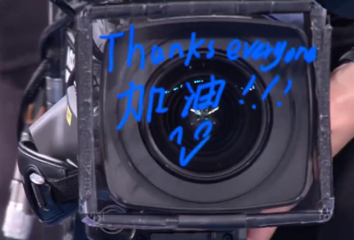 获胜后郑钦文留言“感谢大家,加油”(视频截图)