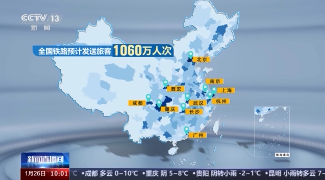通过12306的订票数据,春运首日,全国铁路预计发送旅客1060万人次。春运40天中,全国铁路预计发送旅客4.8亿人次,日均1200万人次,同比2023年春运增长37.9%。